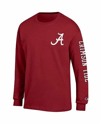 Show off your Alabama Crimson Tide fandom with this Team Stack 3-Hit T-shirt by Champion. It features bold details of a team logo on the upper left chest with lettering along the left sleeve and a logo with lettering on the back. This soft tee ensures a comfy fit as you rep your Alabama Crimson Tide.