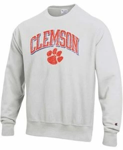 Give your Clemson Tigers fandom a boost when it’s cold out by wearing this Champion Arch Over Logo reverse weave pullover sweatshirt.