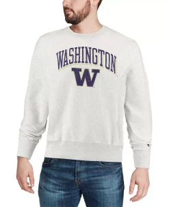 Give your Washington Huskies fandom a boost when it’s cold out by wearing this Champion Arch Over Logo reverse weave pullover sweatshirt.