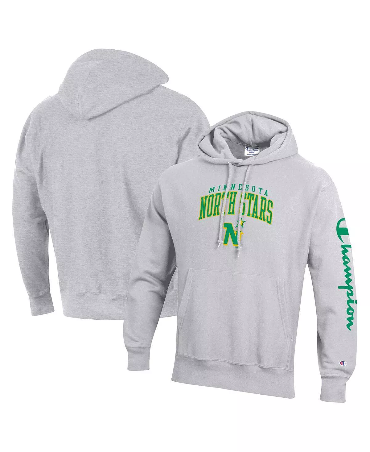Showcase your fiery Minnesota North Stars fandom while maintaining toasty comfort in this Champion Reverse Weave pullover. Along with a heavyweight design, this pullover offers cozy fleece lining, an adjustable hood and front pouch pocket to keep you comfortable all day long. Best of all, the striking Minnesota North Stars graphics on the chest and iconic brand graphics on the sleeve let everyone know you rep your favorite NHL team in style.