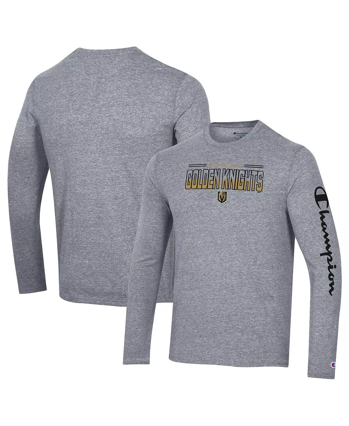 Upgrade your rotation of official Vegas Golden Knights gear with this T-shirt from Champion. It features soft and stretchy tri-blend fabric, making this long sleeve tee the perfect option for keeping you comfortable while cheering on your favorite squad. Thanks to the prominent Vegas Golden Knights graphics displayed on the front, there will never be any doubt about your die-hard fandom.