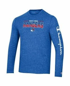Upgrade your rotation of official New York Rangers gear with this T-shirt from Champion. It features soft and stretchy tri-blend fabric, making this long sleeve tee the perfect option for keeping you comfortable while cheering on your favorite squad. Thanks to the prominent New York Rangers graphics displayed on the front, there will never be any doubt about your die-hard fandom.