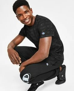 A comfy feel with a sporty vibe, this all-cotton T-shirt from Champion is covered with script logos for a fresh look.