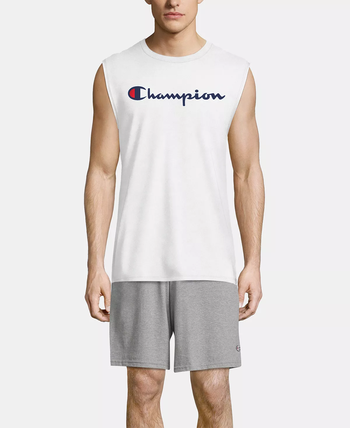 All-cotton jersey brings natural breathability to this T-shirt from Champion, in a sleeveless silhouette for added cool.
