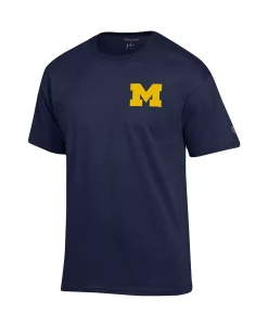 People coming or going will see your Michigan Wolverines fandom when you wear this Stack 2-Hit T-shirt from Champion. It features the Michigan Wolverines logo on the front and team graphics printed on the back. Additionally, the cotton material provides a comfortable feel.