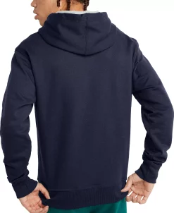 Warm and durable, Champion offers an extra layer of comfort with the Powerblend Hoodie, designed with reduced pill and shrinkage, metal grommets to prevent tearing and a cozy jersey-lined hood.