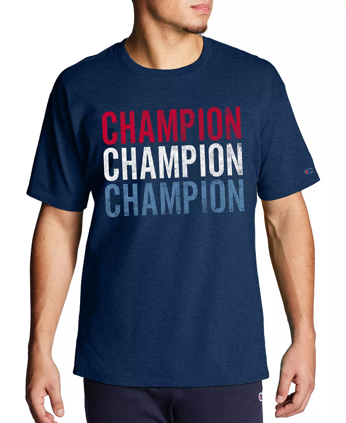 Refresh your relaxed look with the bold red, white and blue logo graphics printed at the front of this soft cotton T-shirt from Champion.