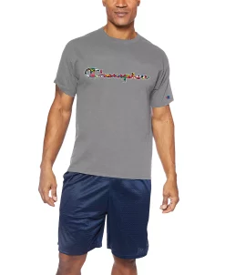 Bring some international appeal to your laid-back look with the variety of world flags featured inside the instantly recognizable logo graphic printed at the chest of this cotton T-shirt from Champion.