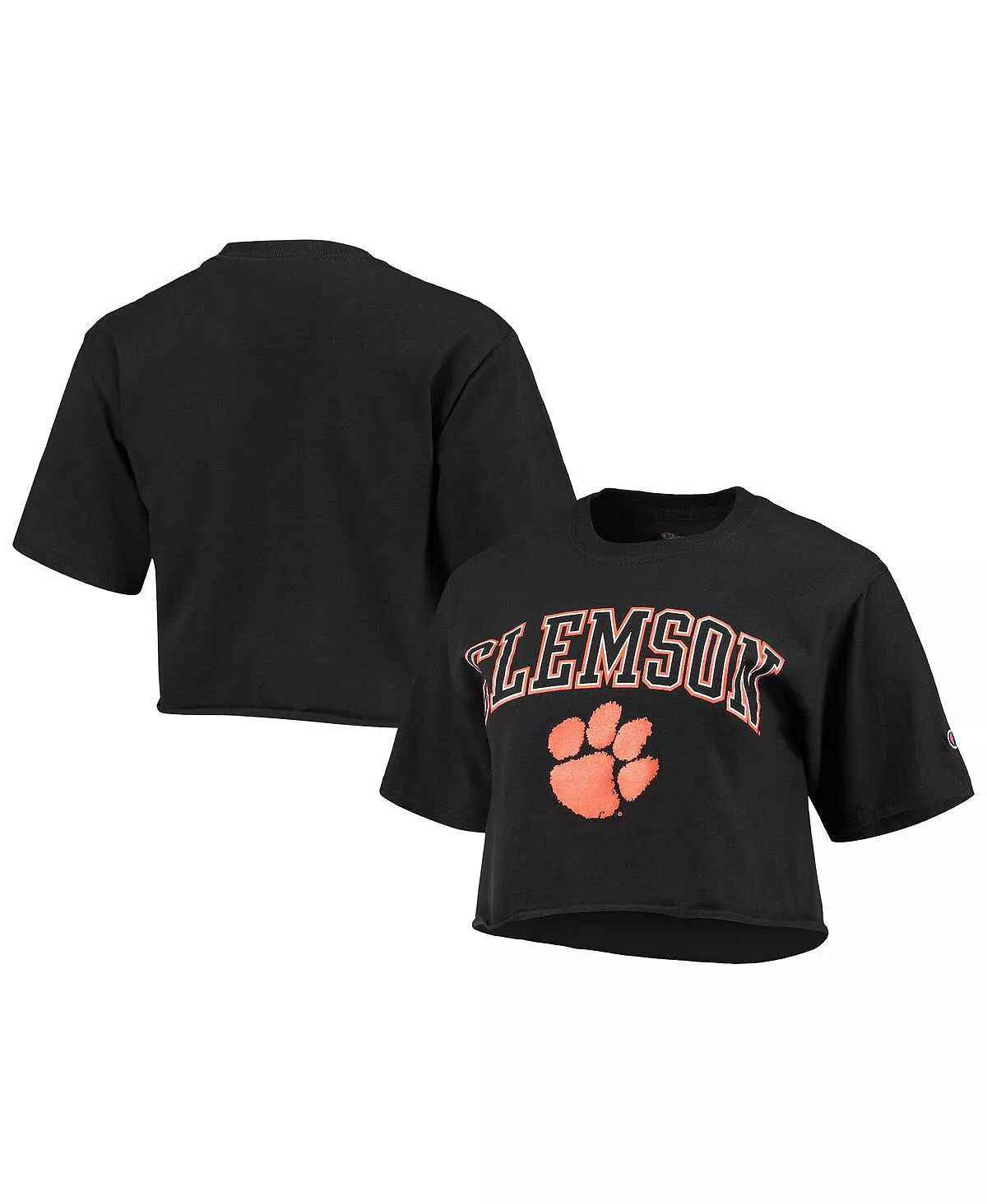 On Clemson Tigers game day, create a casual look with this Cropped Boyfriend T-shirt by Champion. It’s made from comfortable cotton fabric and features recognizable Clemson Tigers graphics across the front. You’ll look like a trendy fan in this tagless tee.