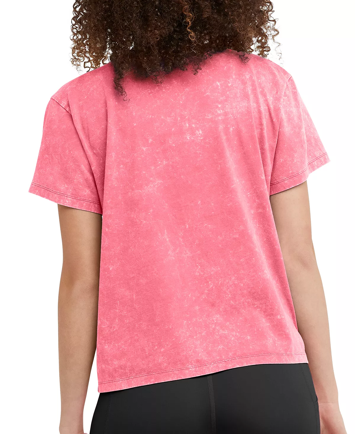 A eternally cool acid wash brings a playful touch to this sporty crewneck tee from Champion, designed with logo accents and short sleeves.