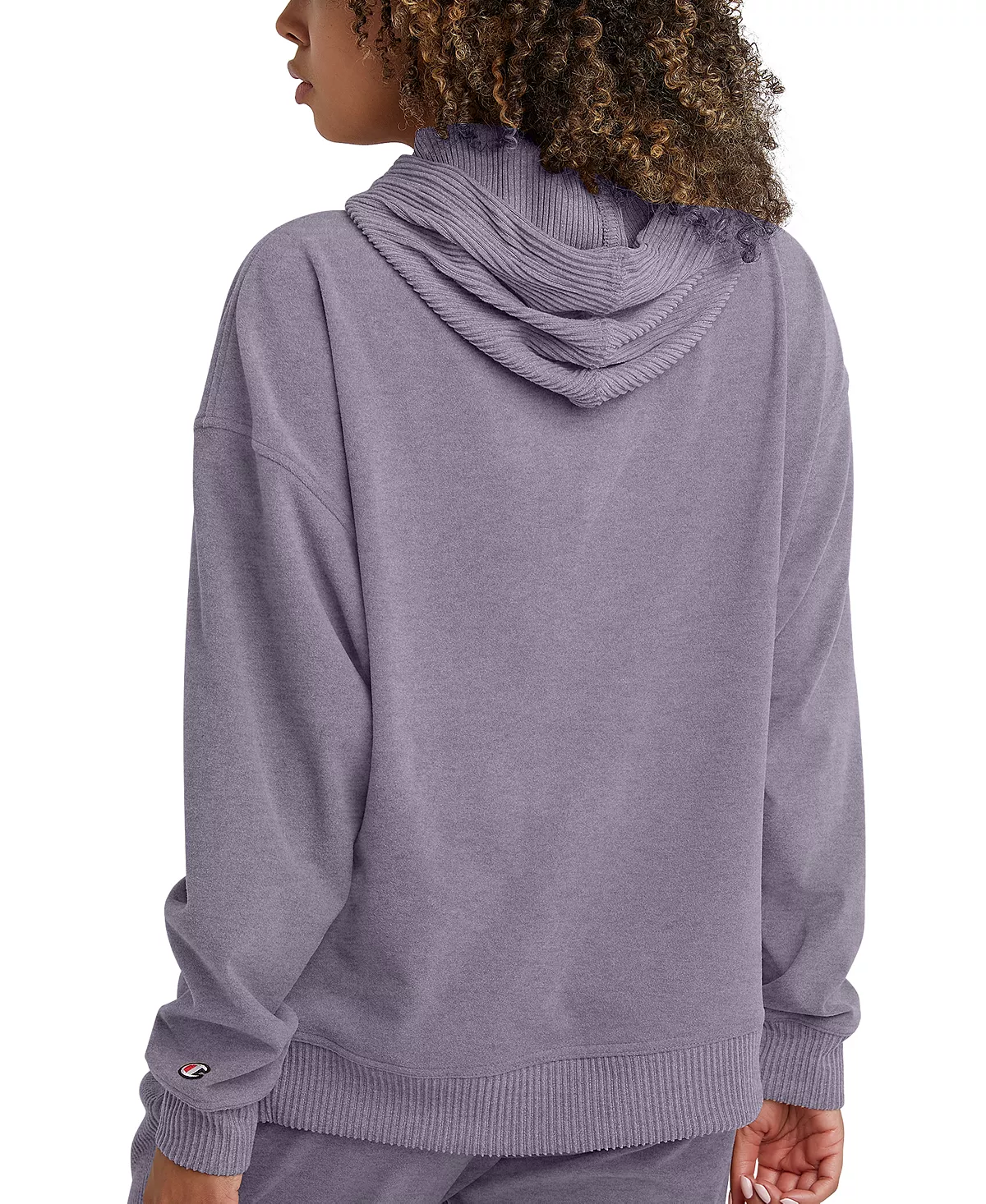 Champion’s Soft Touch hoodie combines ribbed details for style with comfy stretch for ease of movement.