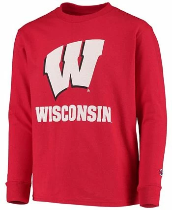 On cooler days, keep excitement for the Wisconsin Badgers at a high level with this Lockup T-shirt from Champion. It features large Wisconsin Badgers graphics printed across the front and a traditional crew neck. This tee will also feel comfortable to wear all day thanks to the lightweight fabric.